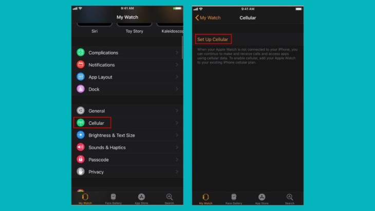 - Bước 5: Trên ứng dụng Apple Watch, chọn My Watch, sau đó Cellular và tiếp tục chọn Set Up Cellular để thiết lập kết nối di động.